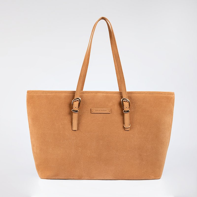 Descrição: Bolsa Feminina Grande em Camurça. Possui alças médias e reguláveis de ombro com fivelas decorativas em metal dourado e tag frontal com logo da marca . Conta com fecho superior em zíper com puxador, e internamente possui dois bolsos com a logo da marca e forro. Com amplo espaço interno, é perfeita para acompanhar a rotina com estilo e praticidade, adicionando um toque sofisticado e moderno às produções do dia a dia.