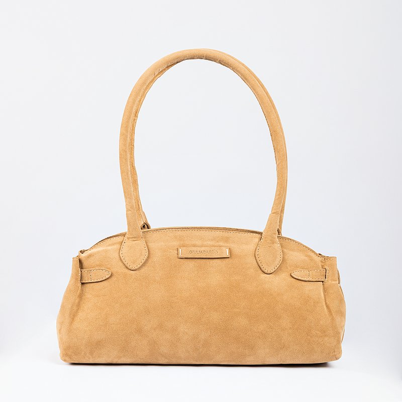Descrição: Confeccionada em camurça de toque macio, o modelo apresenta formato alongado e estruturado, com cantos suavemente arredondados que reforçam sua sofisticação. Possui alças médias e arredondadas, perfeitas para uso no ombro ou na mão, além de detalhes de costura e plaquinha frontal com o nome da marca, que adicionam um charme discreto. A bolsa feminina possui fechamento em zíper e um amplo espaço interno. Apresenta forro e bolso interno.