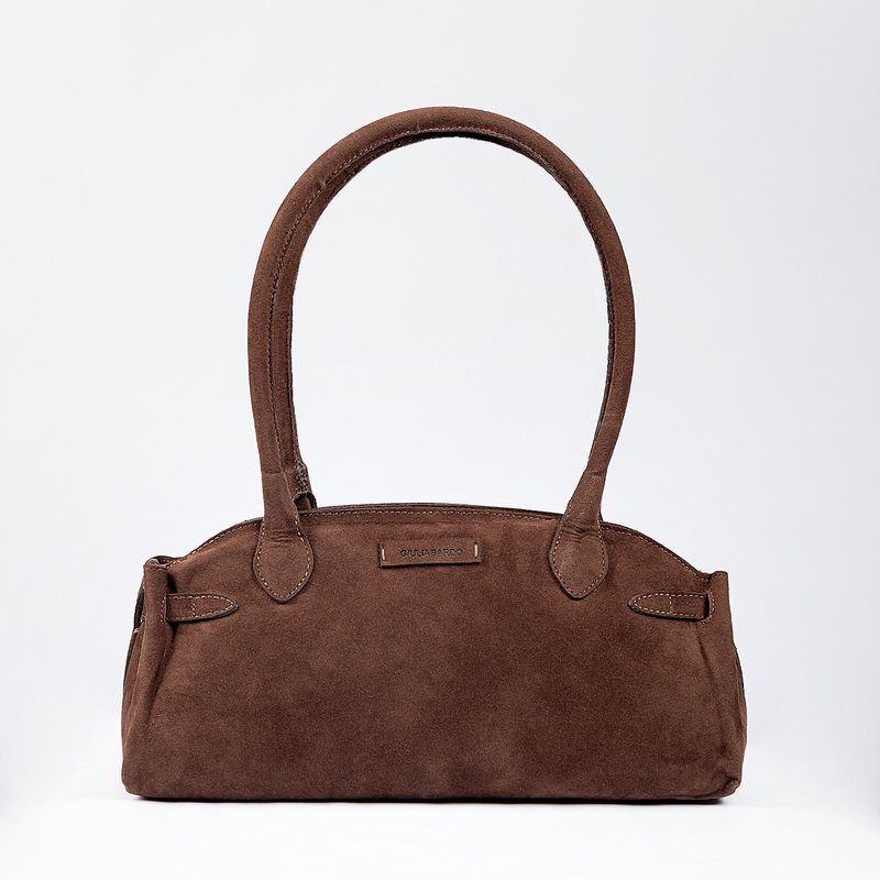 Descrição: Confeccionada em camurça de toque macio, o modelo apresenta formato alongado e estruturado, com cantos suavemente arredondados que reforçam sua sofisticação. Possui alças médias e arredondadas, perfeitas para uso no ombro ou na mão, além de detalhes de costura e plaquinha frontal com o nome da marca, que adicionam um charme discreto. A bolsa feminina possui fechamento em zíper e um amplo espaço interno. Apresenta forro e bolso interno.