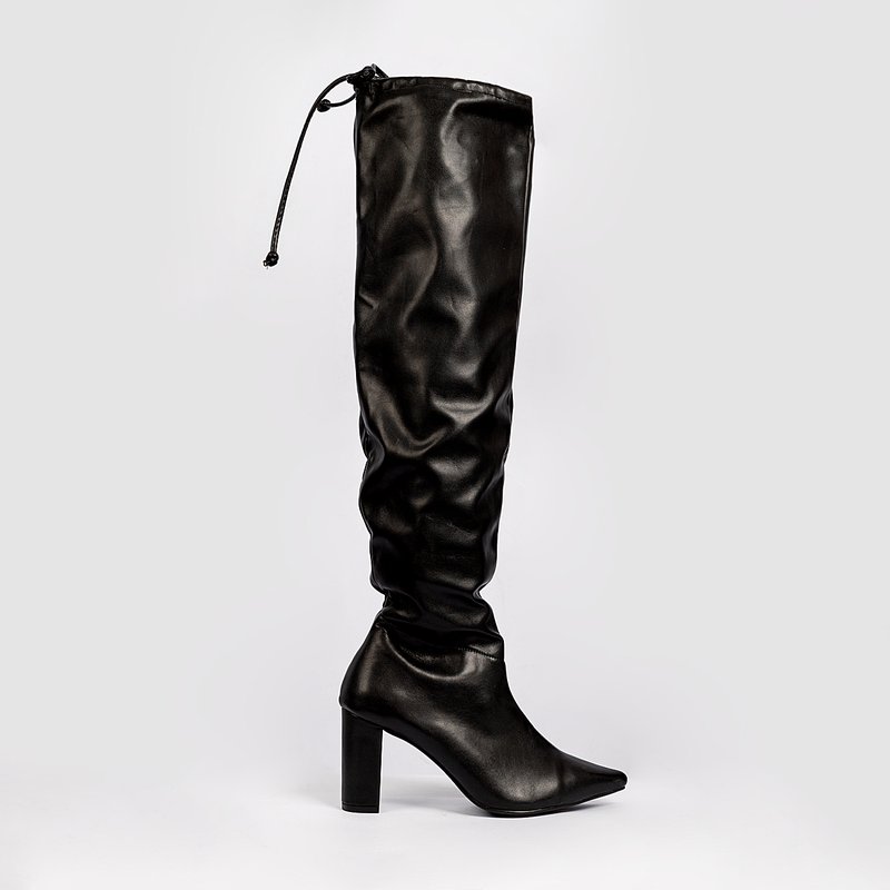 A Bota Soraia entrega presença e sofisticação em um único design. Com cano alto ajustável e caimento levemente enrugado, o modelo une modernidade e sensualidade na medida certa. Seu salto bloco traz estabilidade, enquanto o bico fino adiciona elegância ao look. Uma peça-impacto que transforma qualquer produção.
