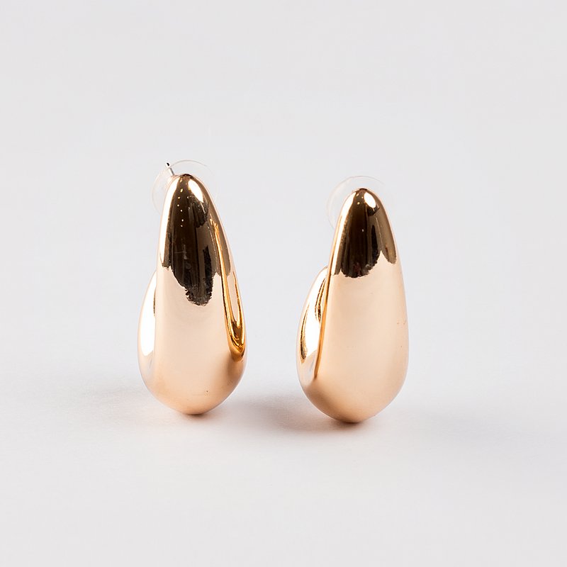 Descrição: Brinco em formato orgânico de gota engurvada com um desing chunky. As linhas são arredondadas e fluidas, trasmitindo um visual moderdo e escultural. A argola apresenta volume e acabamento polido que traz um brilho com sofisticação. Possui fecho de fino e tarraxa com apoio de silicone para maior conforto e segurança.