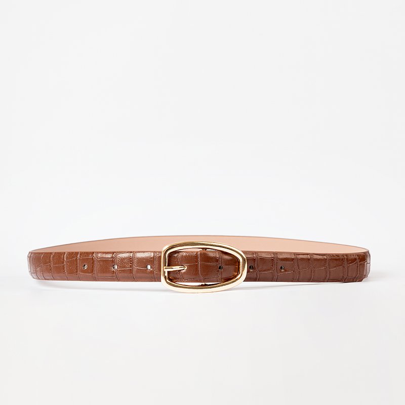 Descrição: A fivela dourada de formato oval alongado, com pino central aparente, acrescenta brilho e modernidade à peça, criando um contraste harmonioso e atemporal. Versátil e refinado, o Flora Croco é o acessório ideal para elevar produções com personalidade e equilíbrio.