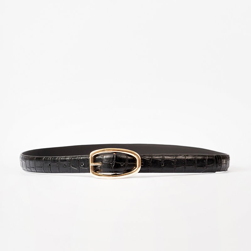 Descrição: A fivela dourada de formato oval alongado, com pino central aparente, acrescenta brilho e modernidade à peça, criando um contraste harmonioso e atemporal. Versátil e refinado, o Flora Croco é o acessório ideal para elevar produções com personalidade e equilíbrio.