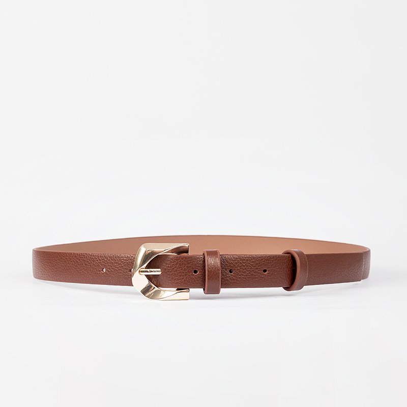 Descrição: Cinto marrom com textura leve. O acessório vem em tira média e possui fivela metálica dourada em formato geométrico, que adiciona modernidade ao visual. Interno liso e acabamento sofisticado. Para uso na cintura, é ajustável e conta com passador em tira do mesmo material.