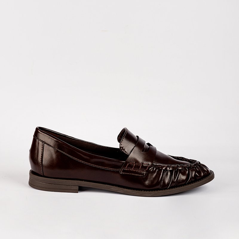 Os detalhes do cabedal e o bico com franzido artesanal reforçam o cuidado no acabamento, acrescentando autenticidade e sofisticação ao design clássico do mocassim