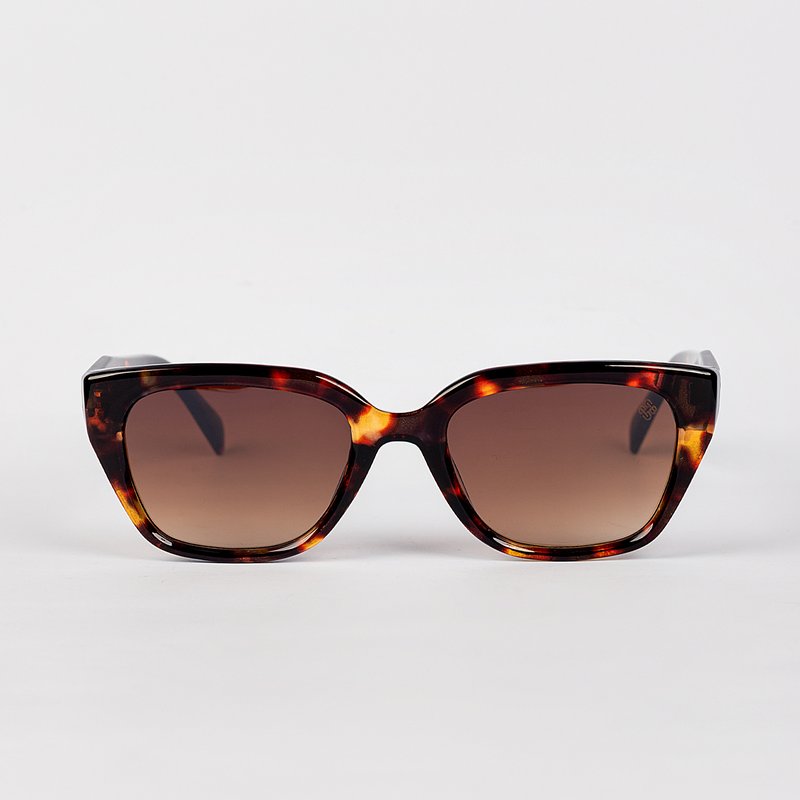 Descrição: Óculos em tom marrom translúcido com lentes em degradê terroso.