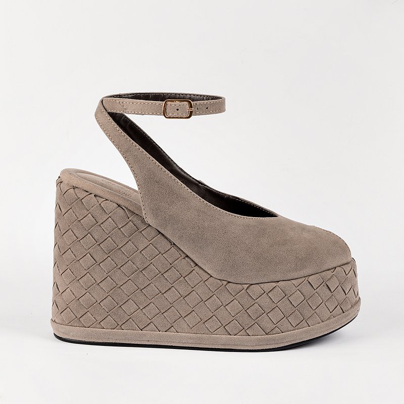 Descrição: A Camille une design contemporâneo e elegância atemporal. Seu cabedal, disponível em acabamento acamurçado ou em P.U Premium, proporciona toque macio e visual sofisticado, enquanto a abertura frontal realça a feminilidade com leveza. A plataforma com detalhe em tressê adiciona profundidade e um charme artesanal refinado, garantindo presença marcante sem abrir mão do conforto. A tira com fivela no tornozelo oferece ajuste seguro e caminhar estável.