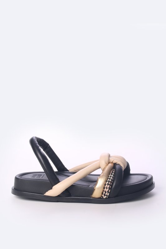 O destaque desta sandália é o cabedal com tiras que formam uma amarração elegante e prática. As tiras entrelaçadas criam um visual distinto e contemporâneo, proporcionando um ajuste personalizado que abraça os pés com segurança.