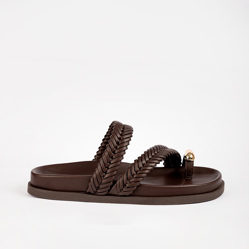 A Papete Alba é a união perfeita entre design artesanal e estética moderna. Suas tiras em trama entrelaçada conferem personalidade e riqueza visual ao modelo, enquanto o detalhe metalizado no dedo adiciona um toque sofisticado.