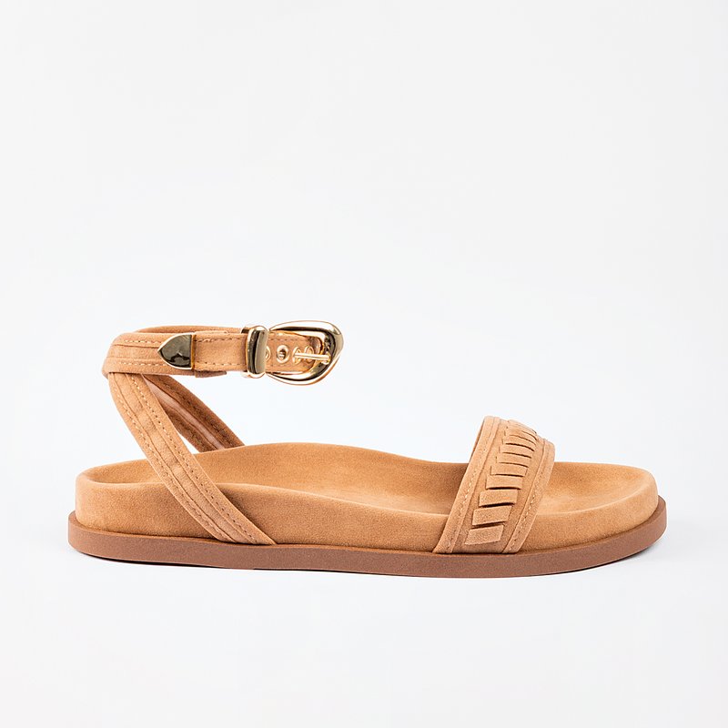 Descrição: Papete feminina com design moderno e acabamento em camurça macia, que garante conforto e sofisticação. O modelo possui sola flat e bico arredondado, com tira frontal adornada por detalhe trançado e fechamento delicado por fivela dourada no tornozelo. Conta com palmilha anatômica e solado leve, que oferece estabilidade e aderência. Um modelo essencial para quem valoriza elegância e bem-estar no dia a dia.