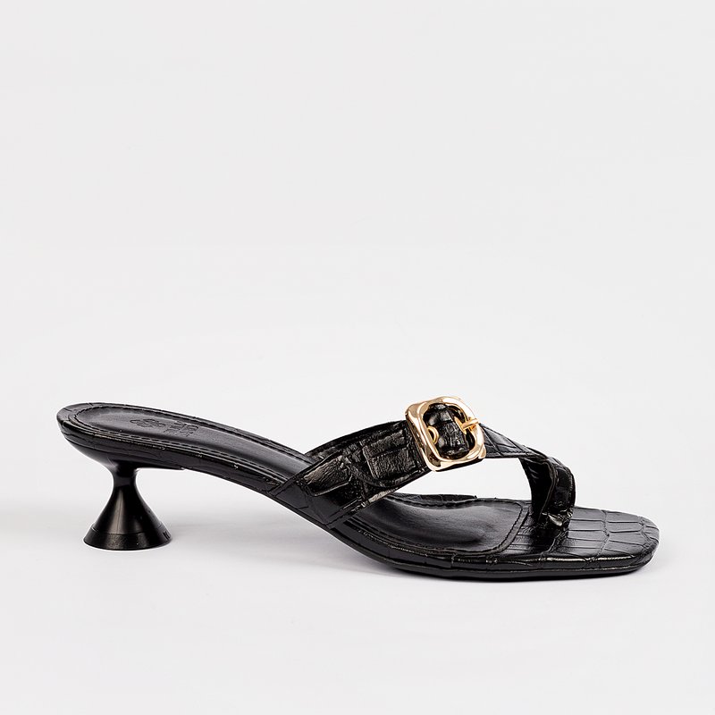 Chic e atemporal, esta sandália une o charme da textura croco ao detalhe sofisticado da fivela dourada. O salto taça baixo garante conforto, enquanto o design minimalista faz dela uma peça perfeita para compor looks que vão do dia à noite com elegâcia.
