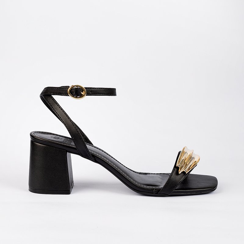 Elegante e confortável, a sandália une o salto bloco que garante estabilidade com um detalhe metalizado moderno, transformando o modelo em peça-chave para produções sofisticadas. Ideal para eventos, trabalho ou ocasiões especiais, é a escolha certa para quem busca estilo com praticidade.