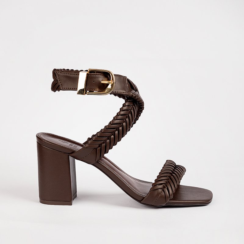 Descrição: Sandália de salto bloco em P.U Premium. Possui salto médio, bico quadrado levemente arredondado e tiras trançadas com acabamento impecável. Conta com fechamento em fivela dourada no tornozelo. Um modelo sofisticado, que valoriza o pé e traz uma estética rica.