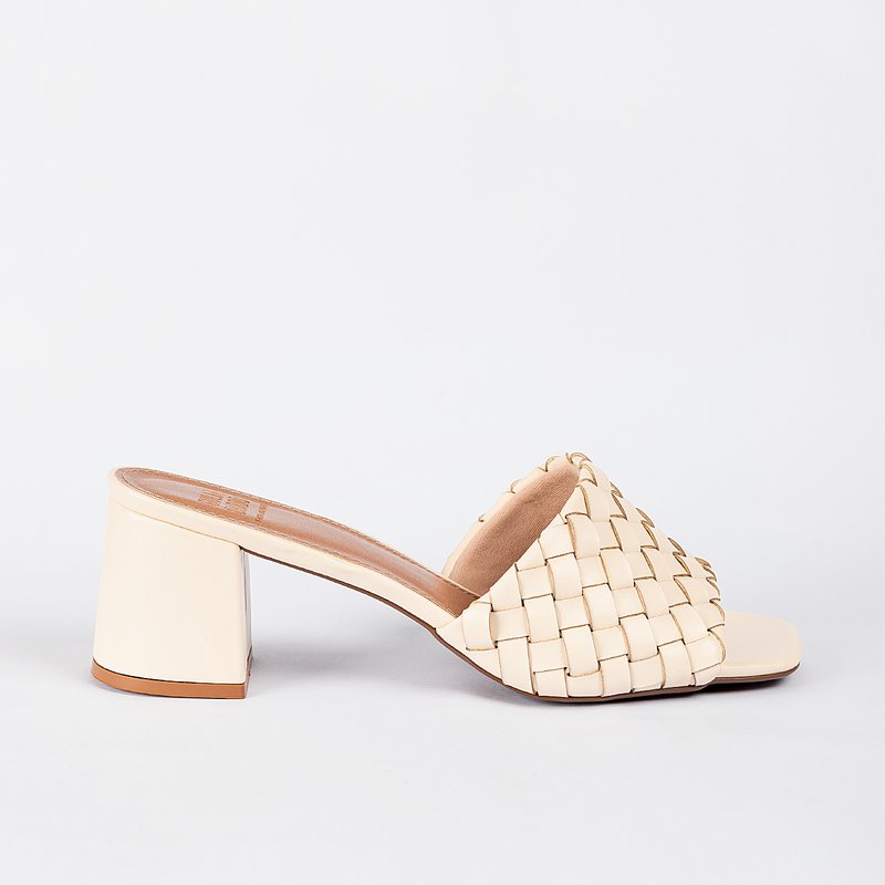 Descrição: Tamanco feminino em acabamento trançado artesanal. O modelo tem salto médio bloco e bico quadrado, com tira larga sobre o peito do pé que proporciona firmeza e conforto ao caminhar. Aberto no calcanhar, exibe o pé de forma elegante e contemporânea. A palmilha acompanha a cor do modelo e traz o nome da marca em destaque. Um clássico moderno que combina com produções sofisticadas e minimalistas.